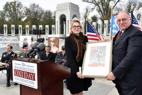 Earlier in the day, at the National World War II Memorial, the Oxi Day Foundation honored three remarkable WWII veterans – a Greek, a Greek-American and an American – alongside Korean War veteran Michael Johnson who received the prestigious 2018 Michael Jaharis Service Award, for his service in the war and continued service to the Greek-American community.