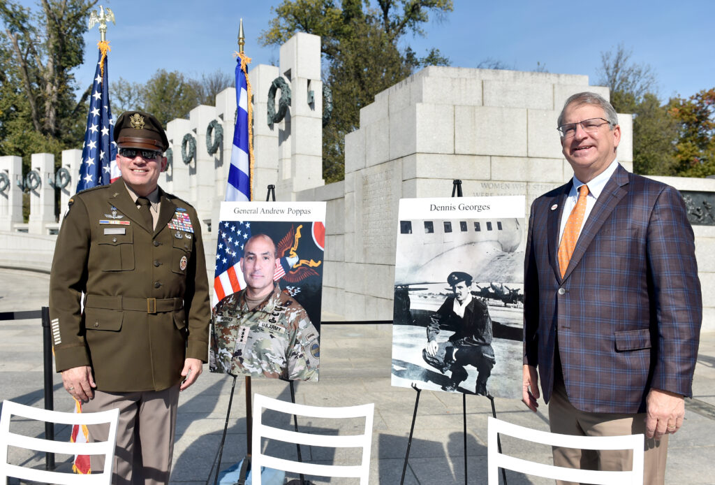 WASHINGTON, DC, November 22, 2024 – In a heartfelt ceremony at the National WWII Memorial, Four Star General Andrew Poppas received the 2024 OXI Service Award for his courageous service in the US military. General Poppas received the award from and was introduced by George Logothetis, Executive Chairman of Libra Group and Chairman of Libra Philanthropies.