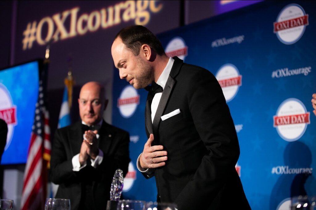 “Moral courage can be stronger than military might as the people of Greece showed in October of 1940 when the Axis ultimatum was answered with one short word: OXI!” There is nothing despotic regimes hate more than hearing this word…We say NO to [Russia’s] cruelty, to its corruption, to its constant lying. And we look forward to one day saying YES to a Russia that respects the rights and freedoms of its citizens and that plays a constructive role in international affairs.”