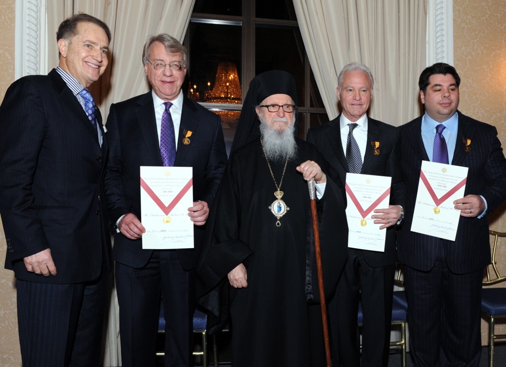 (L to R): Andy Manatos, Jim Chanos, Archbishop Demetrios, Dennis Mehiel, George Tsunis